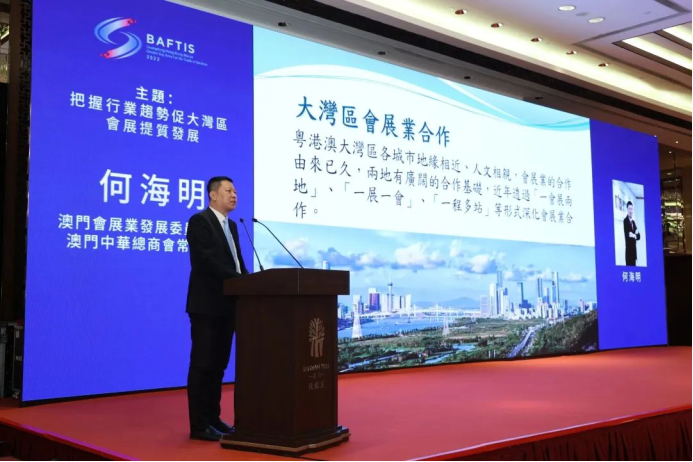 澳门会展旅游业协会会长何海明发表《把握行业趋势促大湾区会展提质发展》主题演讲。